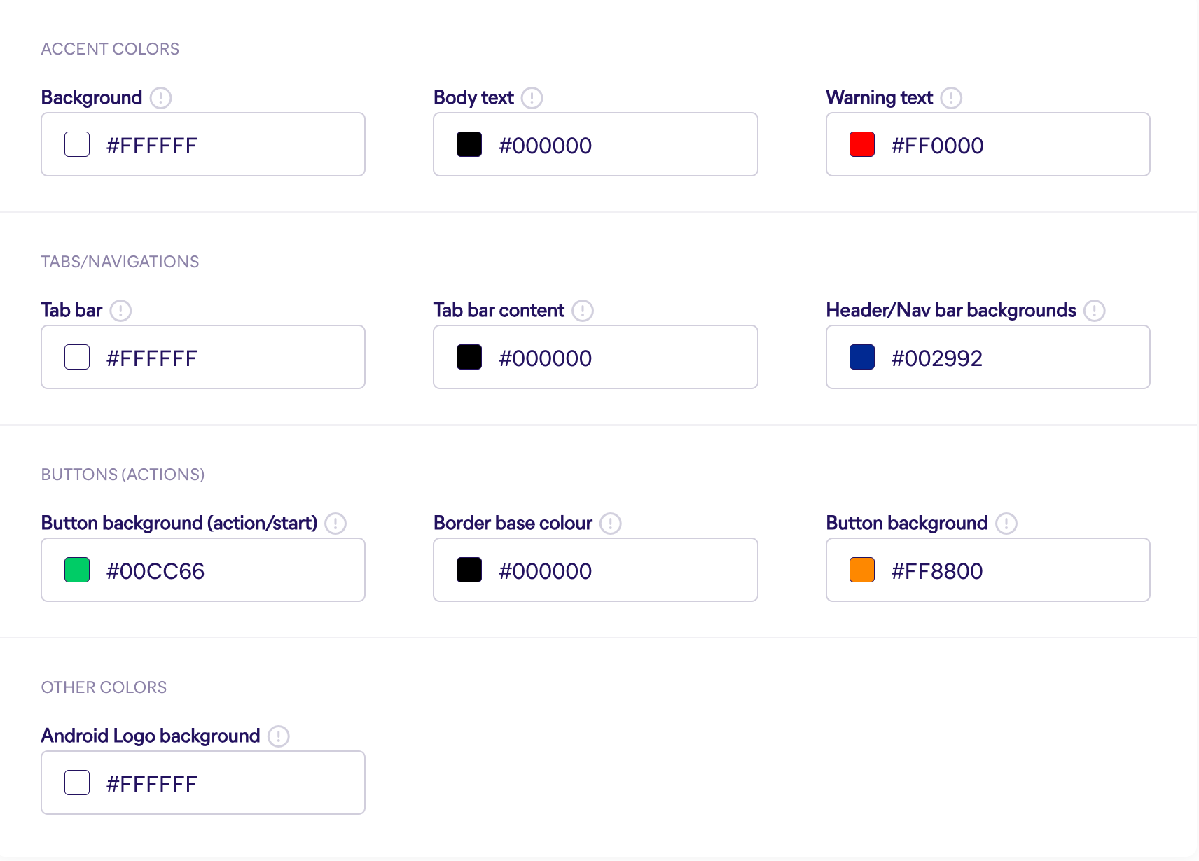 - Android Logo background: Logo with a transparent background will be filled with this color on Android