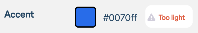 Accessibility Warning: Contrast and color use is vital to accessibility. So you may see warnings for contrast ratios for color selections that break accessibility guidelines. Colors will either be too light or too dark.