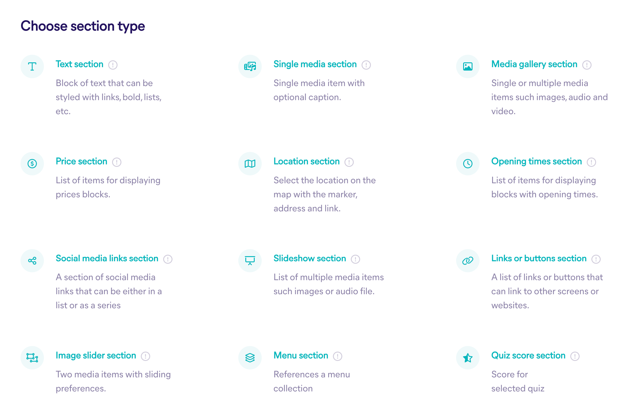 Once you have entered the screen details, you can start enhancing the visitor's experience by adding various content options. Consider the following options: