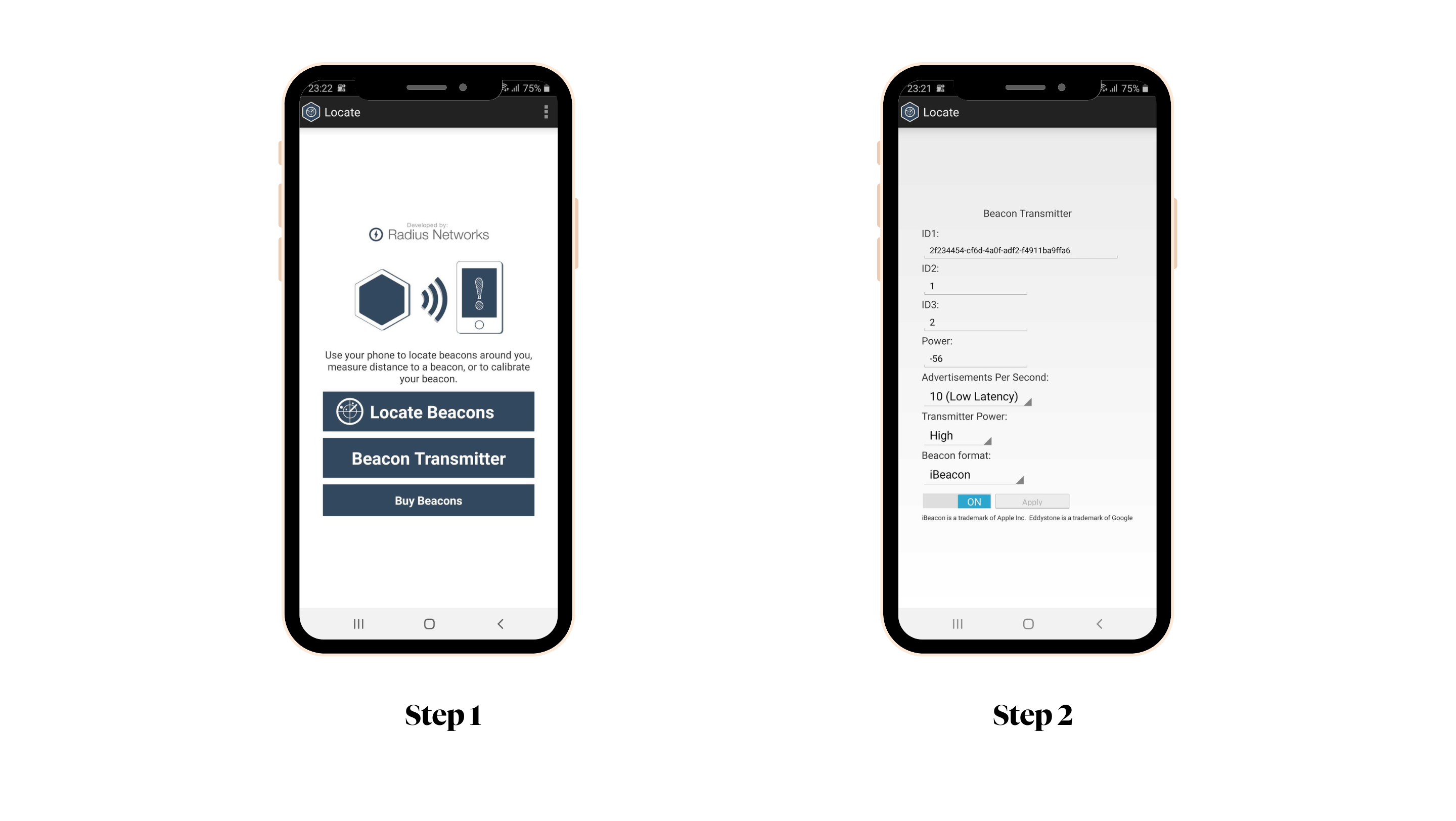Below are instructions on how to use these apps to simulate a beacon and troubleshoot pairing your devices with a beacon.